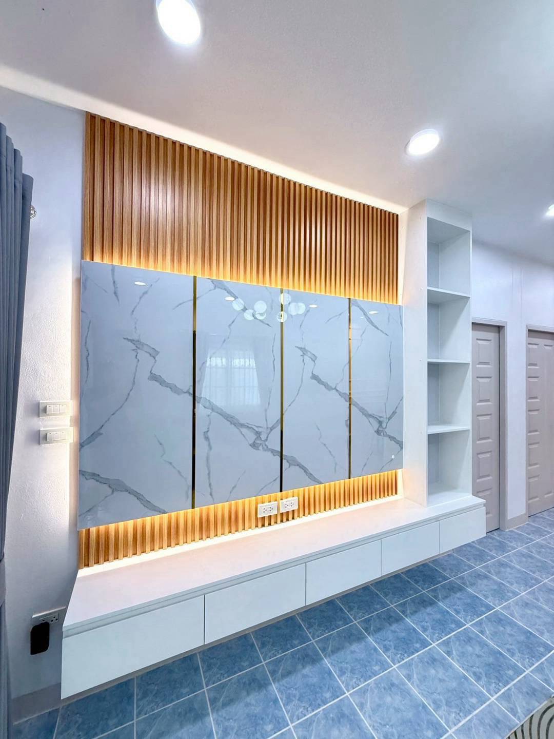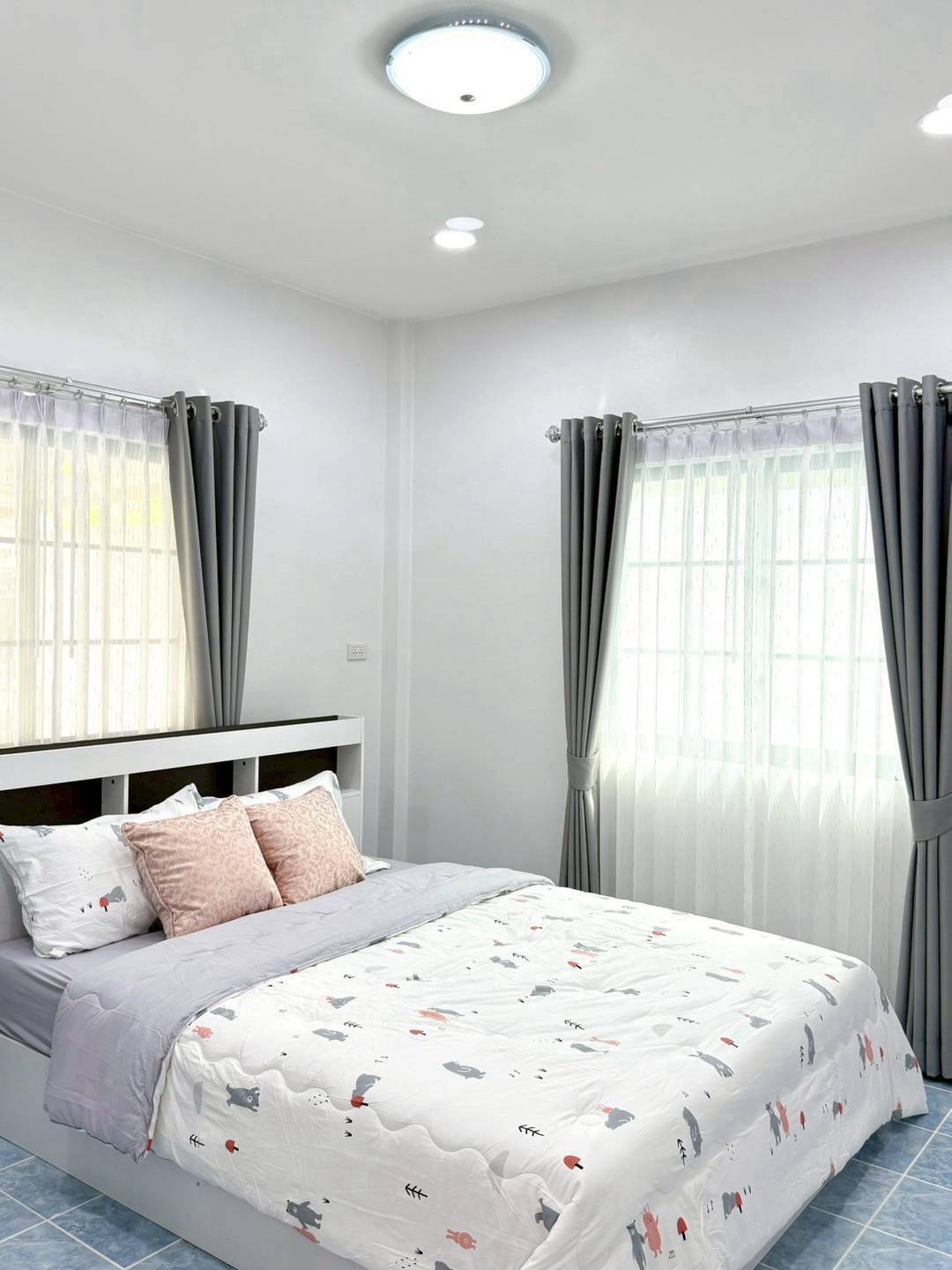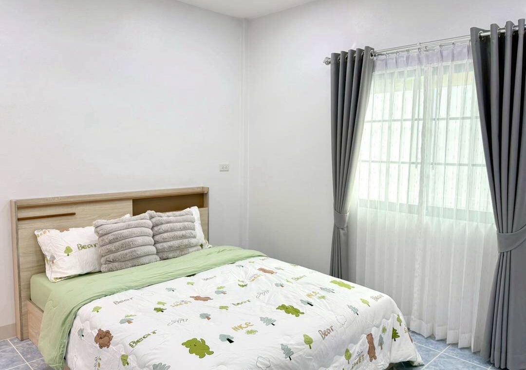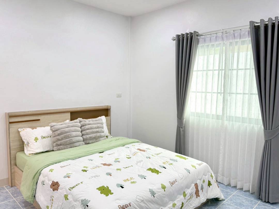 ห้องนอน 2 ห้อง (ตู้ , เตียง , โต๊ะเครื่องแป้ง , ที่นอน หมอน , ผ้าปูครบเซ็ต)